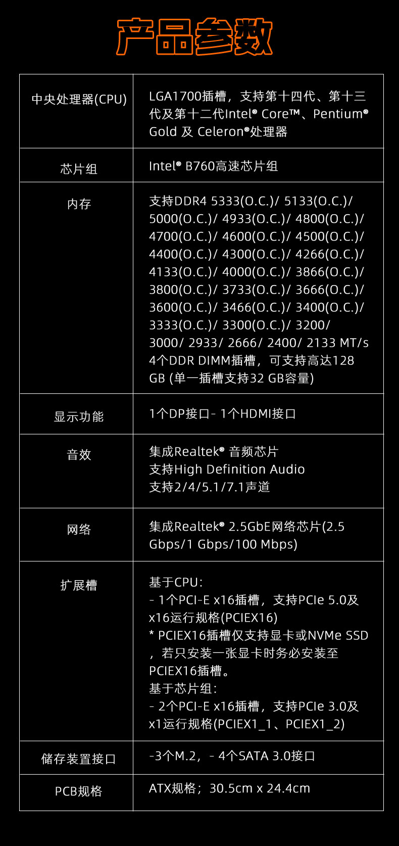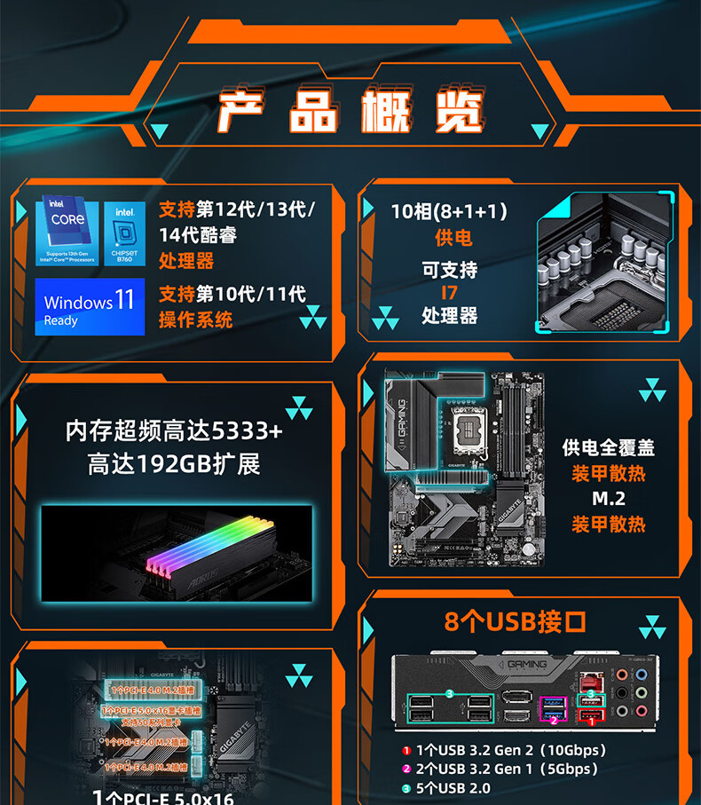 • 商品名称:技嘉(GIGABYTE)B760 GAMING X DDR4 GEN5 主板