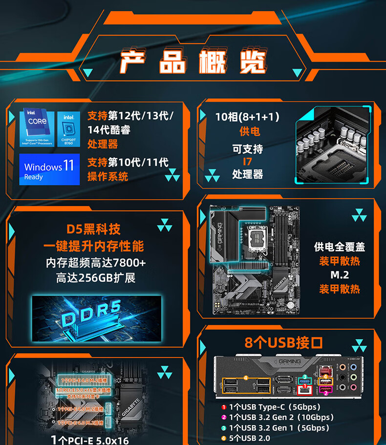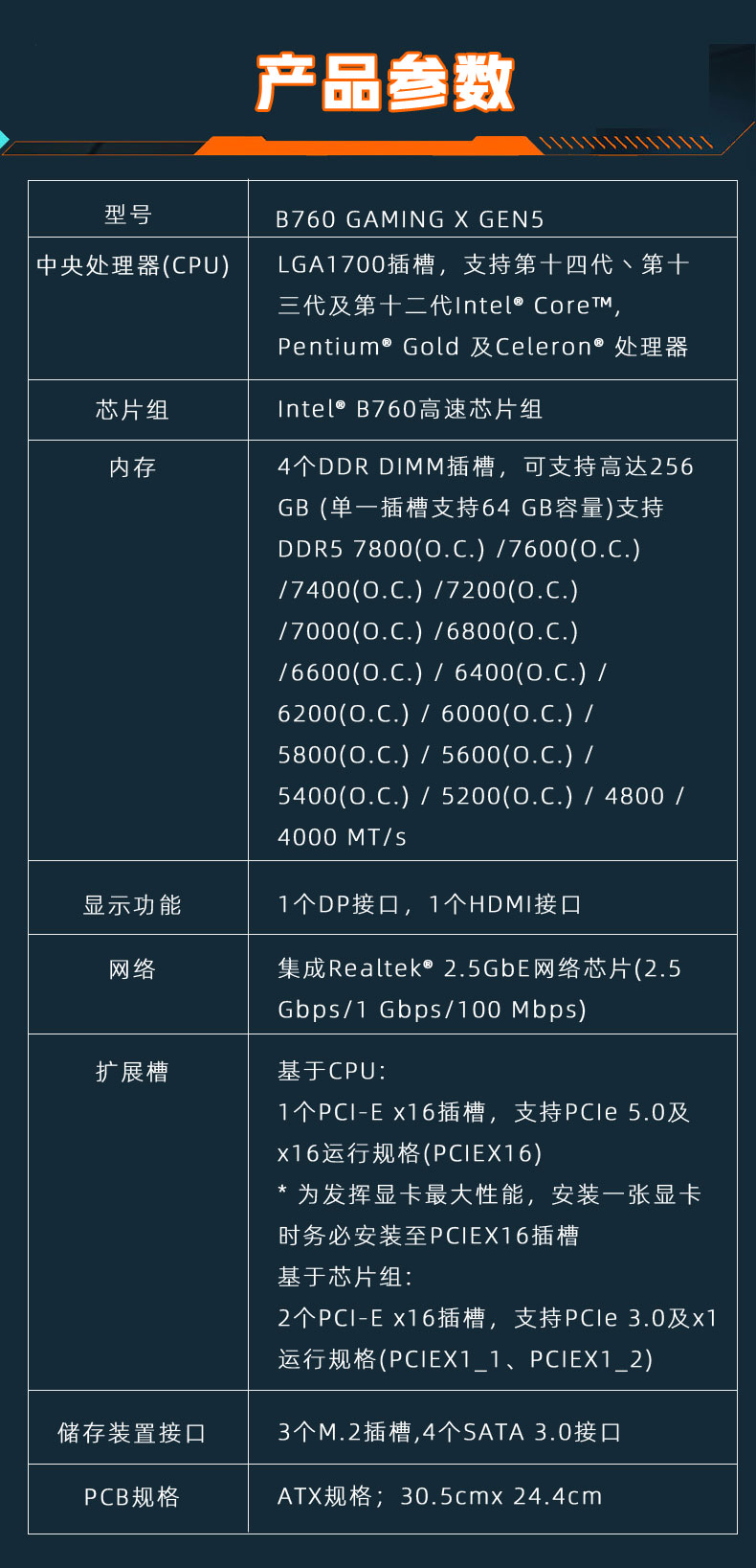 • 商品名称:技嘉(GIGABYTE)B760 GAMING X GEN5 主板