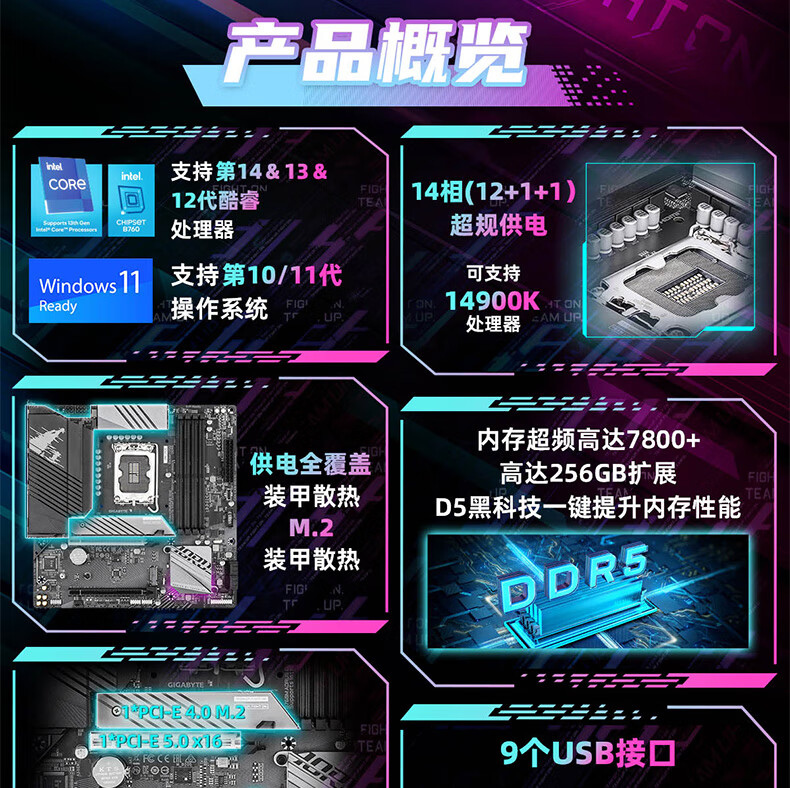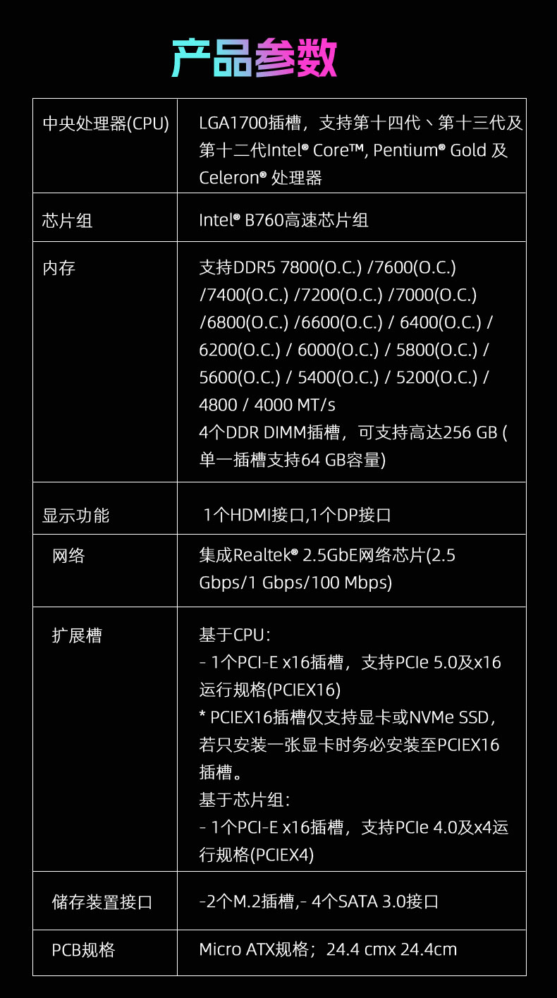 • 商品名称:技嘉(GIGABYTE)B760M AORUS ELITE GEN5主板