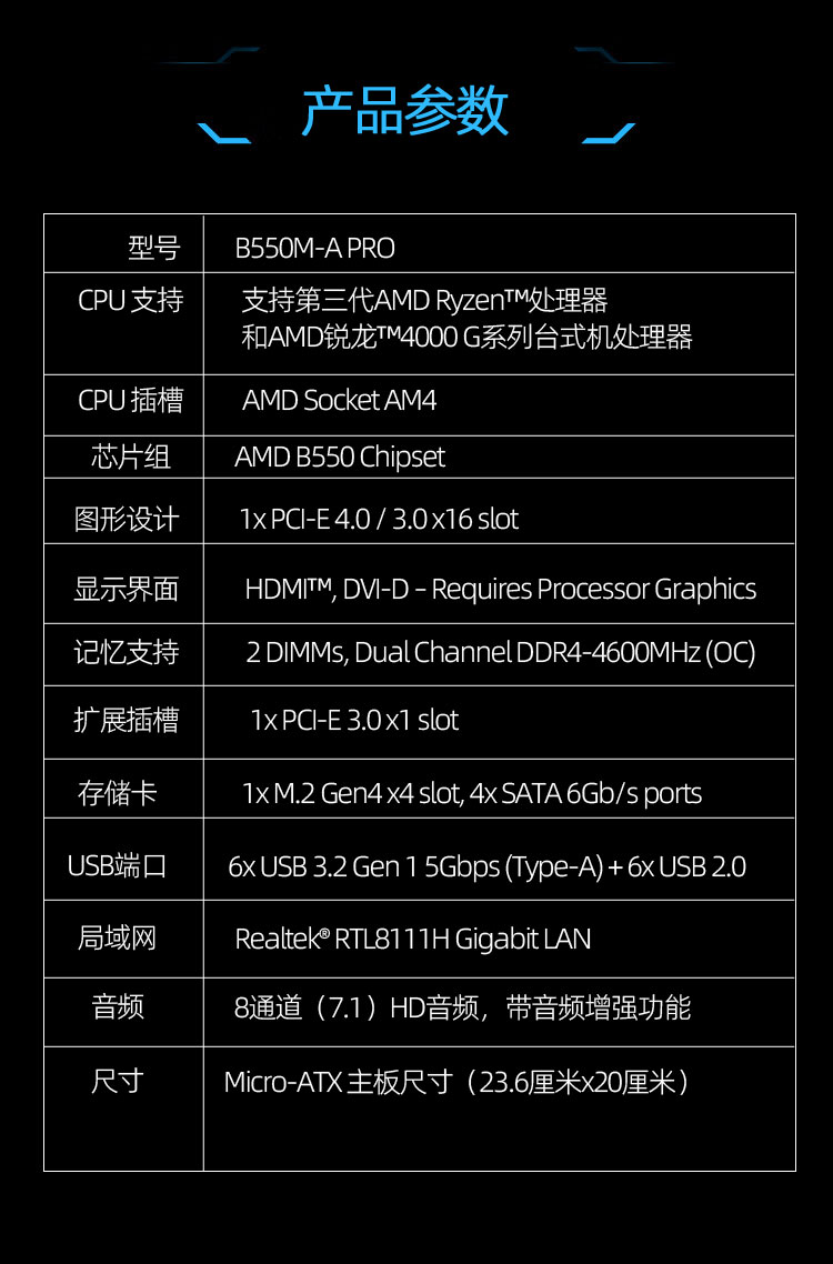 • 商品名称:微星(MSI)B550M-A PRO 主板
