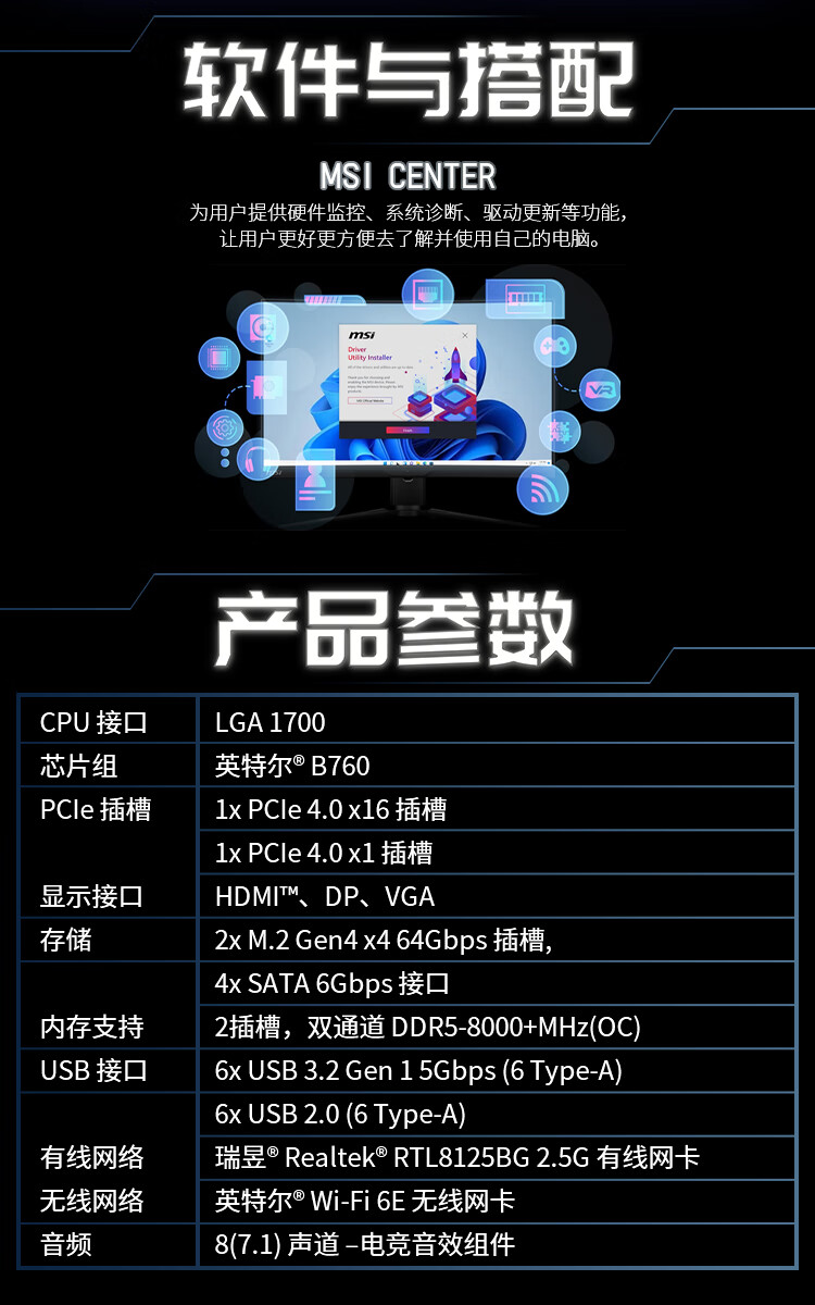 • 商品名称:微星 B760M GAMING WIFI 主板