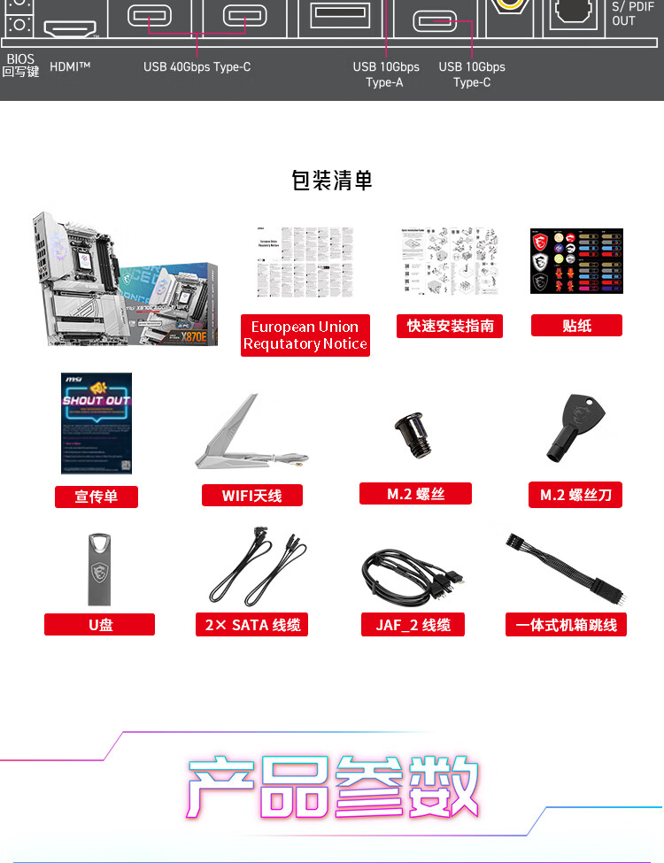 • 商品名称:微星 MPG X870E EDGE TI WIFI 主板