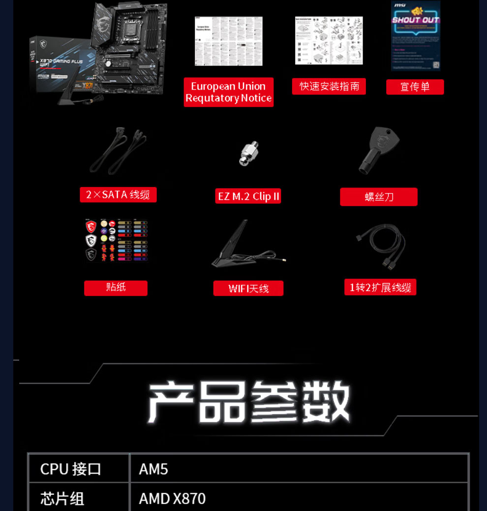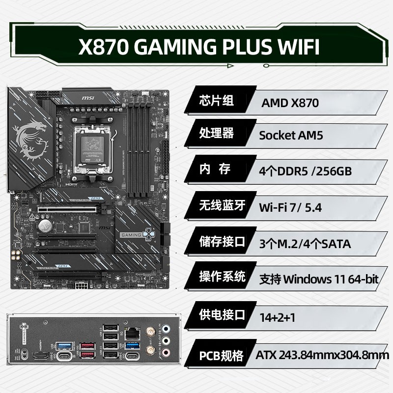 • 商品名称:微星 X870 GAMING PLUS WIFI 主板
