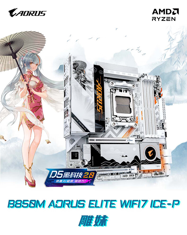 • 商品名称:技嘉(GIGABYTE)B850M AORUS ELITE WIFI7 ICE-P主板DDR
