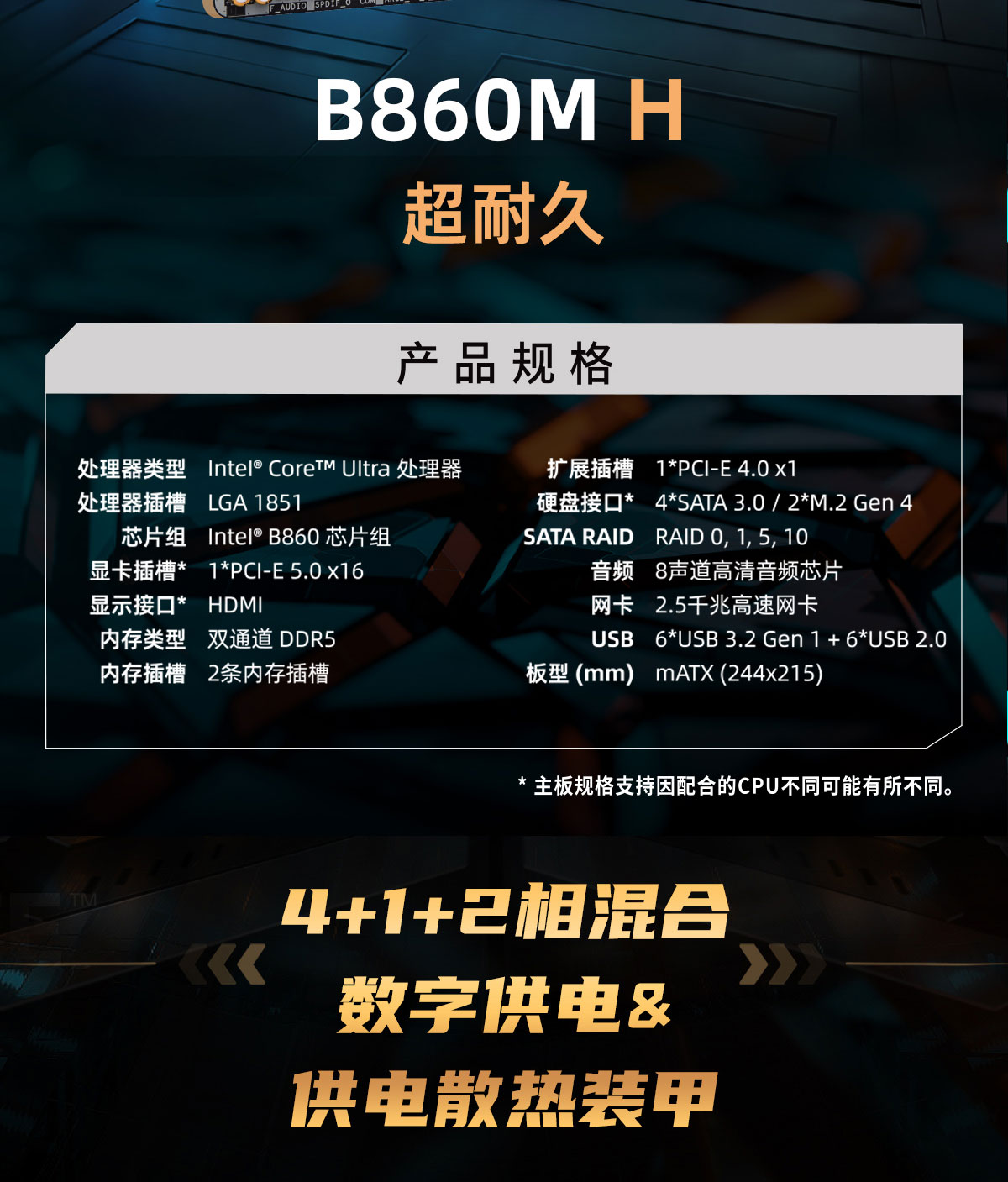 • 商品名称:技嘉(GIGABYTE)B860M H DDR5主板
