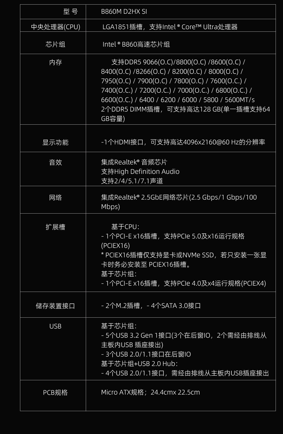 • 商品名称:技嘉(GIGABYTE)B860M D2HX SI 主板