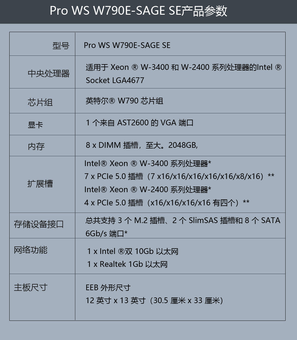 • 商品名称:华硕PRO WS W790E SAGE SE工作站主板
