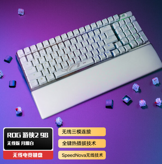 华硕 ROG 游侠2 98无线版 月耀白 ABS 雪舞白轴 键盘
