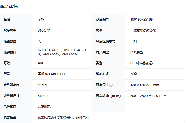 • 商品名称:圣旗 圣狮360 ARGB LCD 散热器