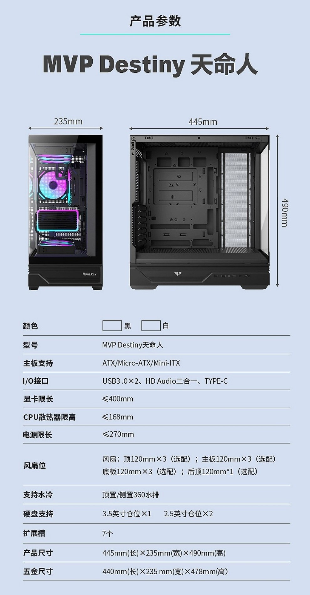 • 商品名称:航嘉(Huntkey)MVP Destiny天命人 机箱 白色