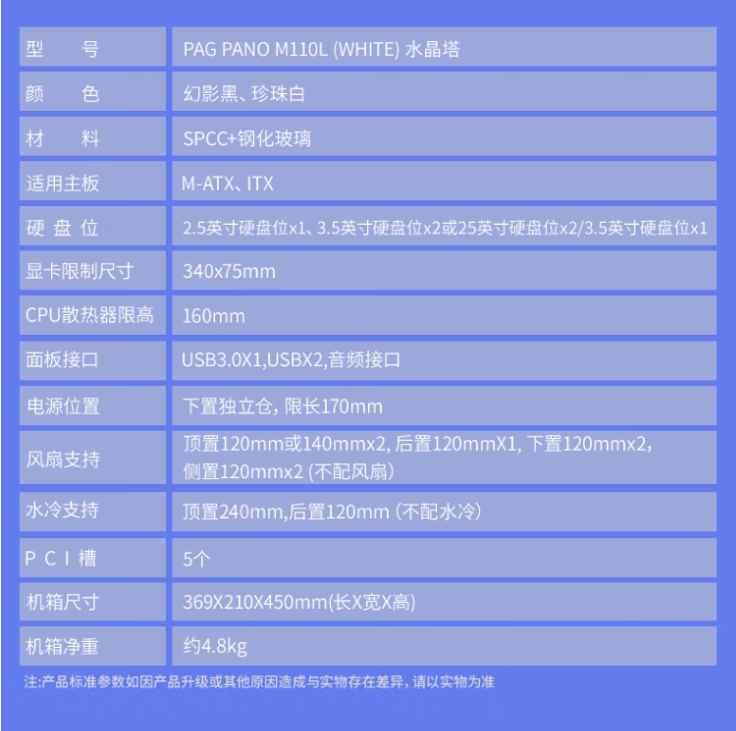 • 商品名称:微星(MSI)PAG PANO M110L WHITE 水晶塔机箱