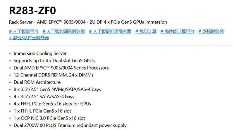 • 商品名称:技嘉(GIGABYTE)R283-ZF0 AMD 服务器
