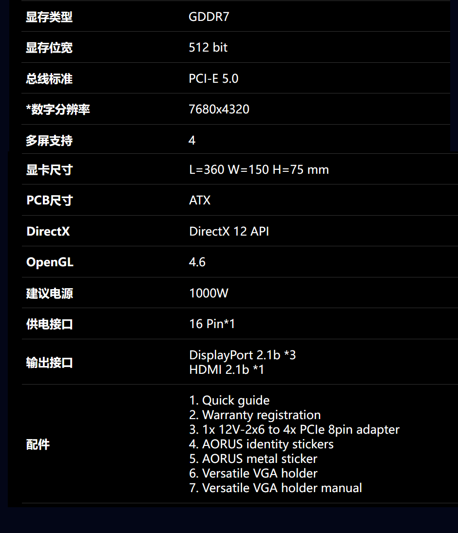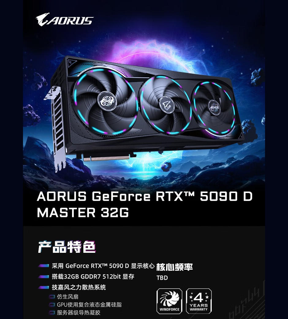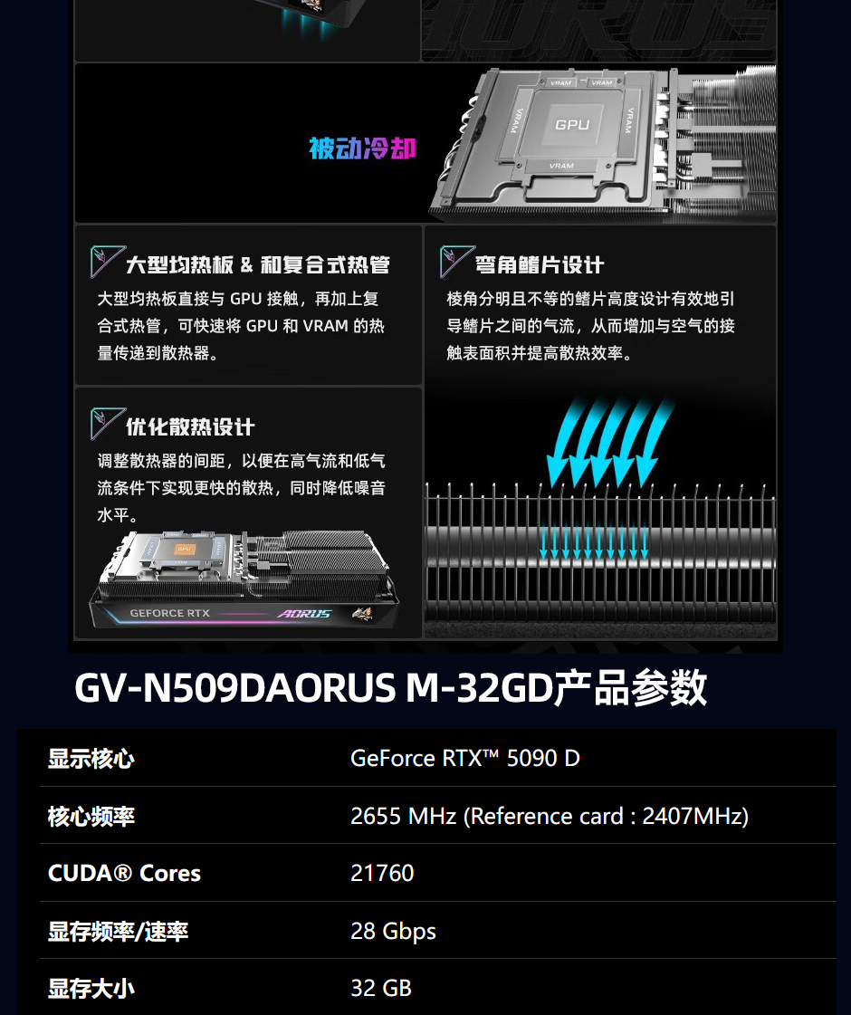 • 商品名称:技嘉(GIGABYTE)N509D AORUS M-32GD 超级雕 显卡