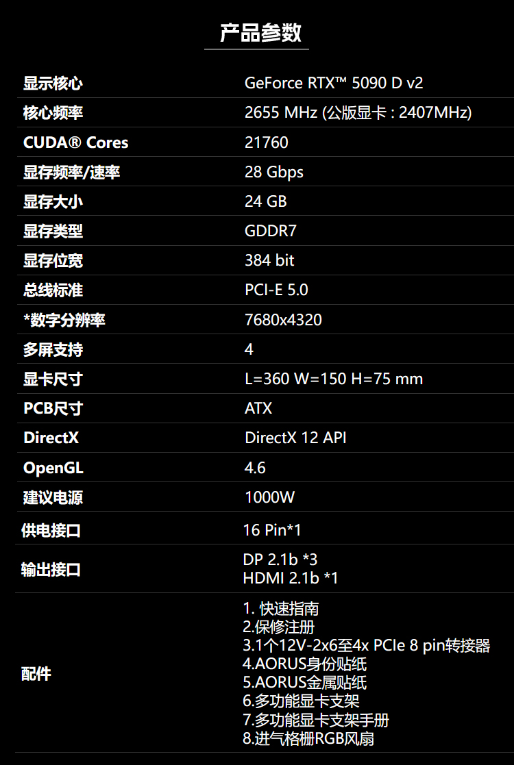• 商品名称:技嘉(GIGABYTE)N509D AORUS M ICE-24GD 超级雕白色 显卡