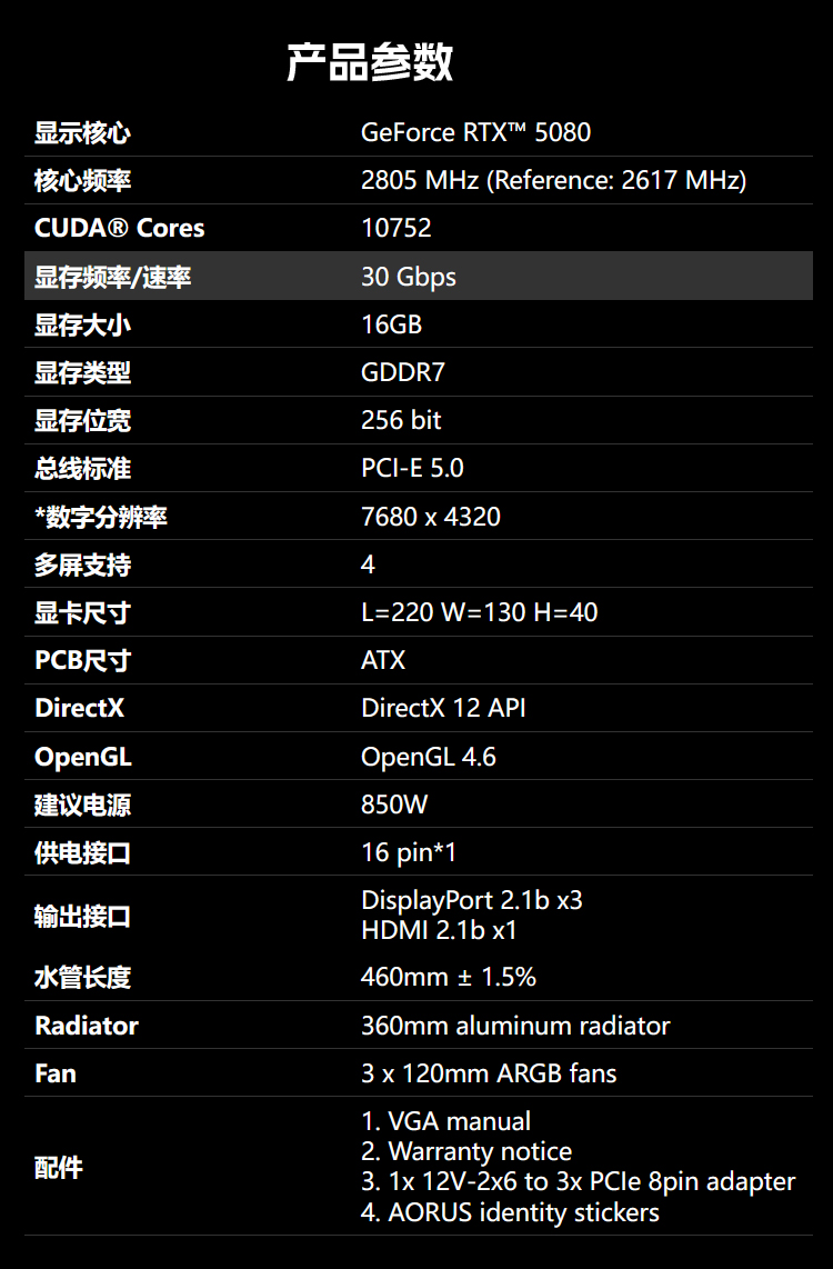 技嘉(GIGABYTE)N5080AORUSX W-16GD 一体式水冷 显卡