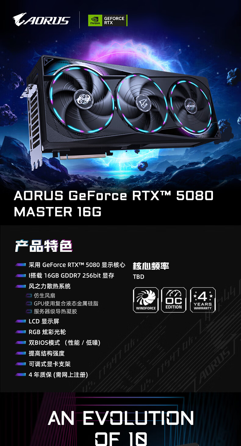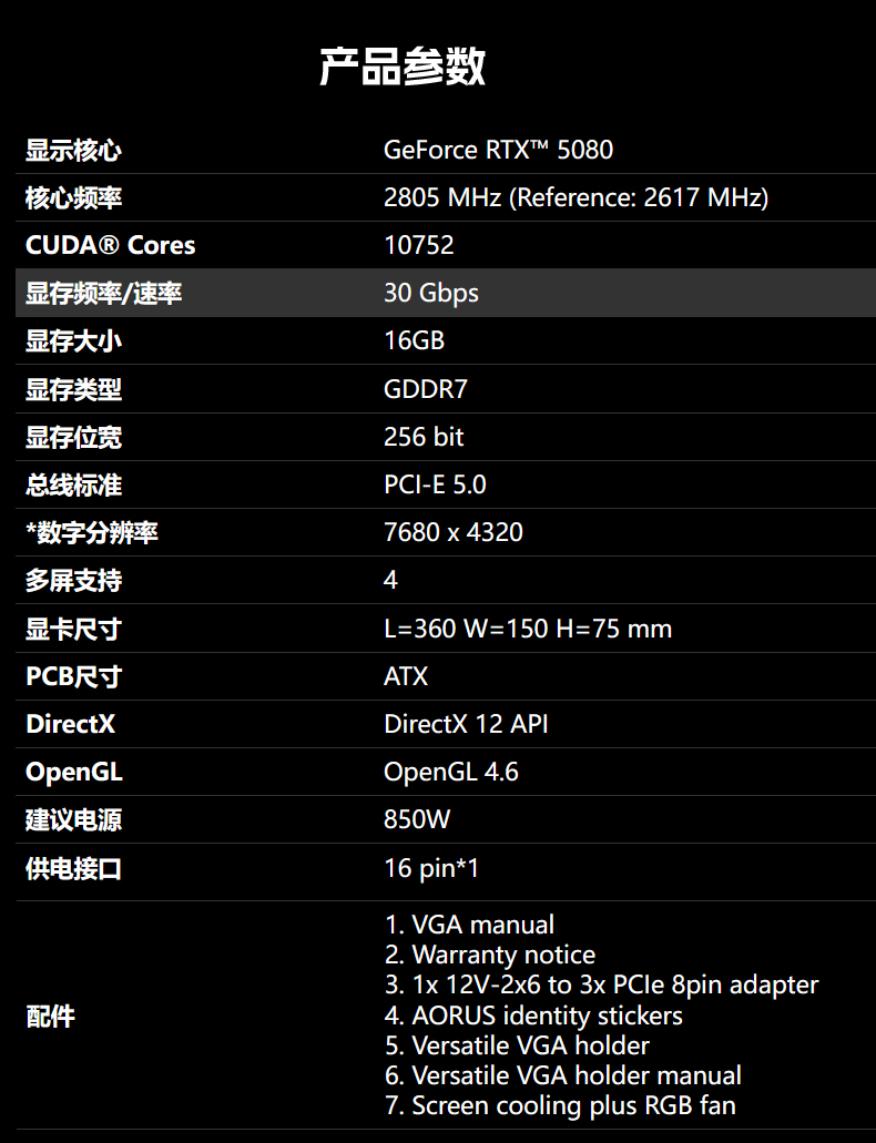 • 商品名称:技嘉(GIGABYTE)N5080 AORUS M-16GD 超级雕 显卡