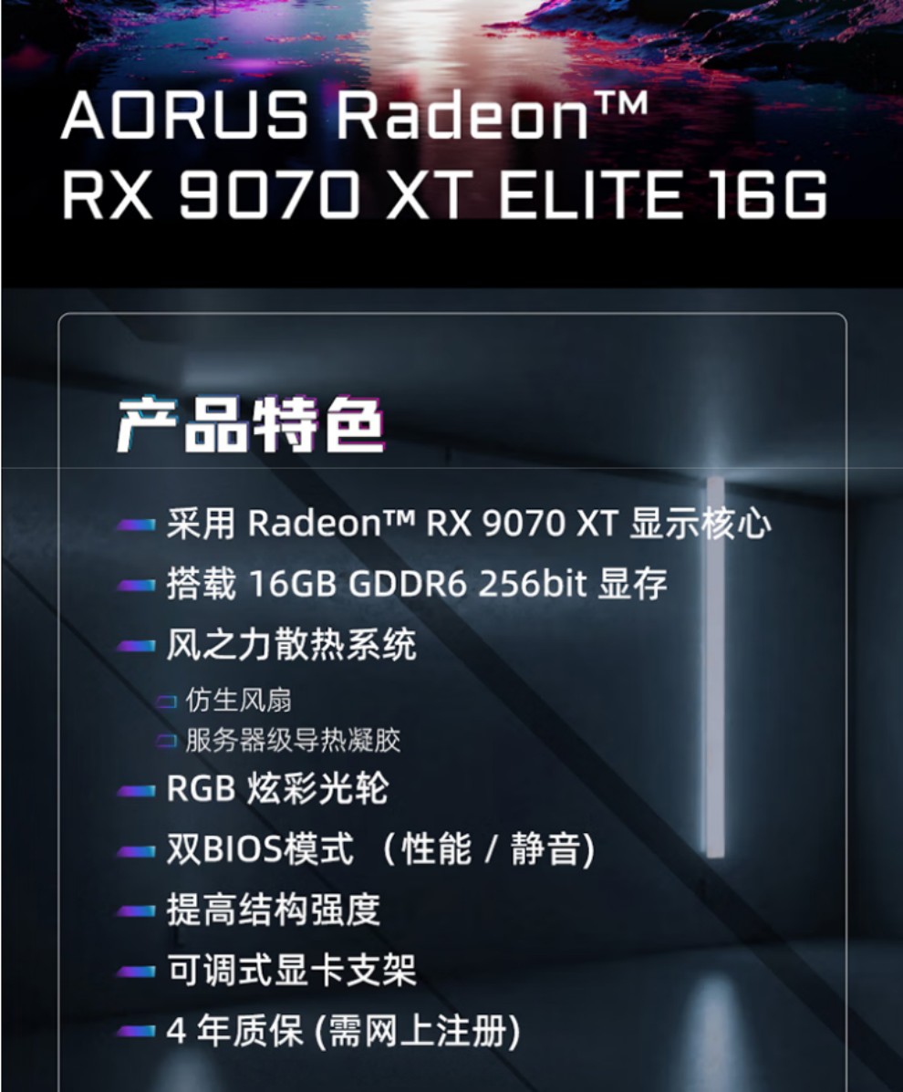 • 商品名称:技嘉(GIGABYTE)9070XTAORUS E-16GD 小雕