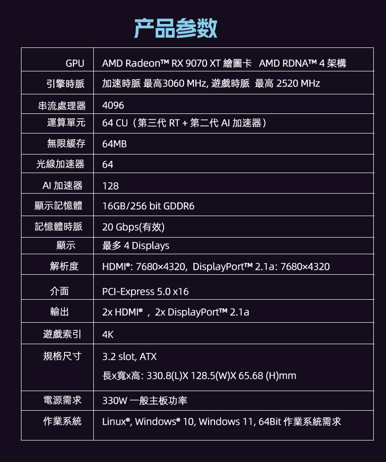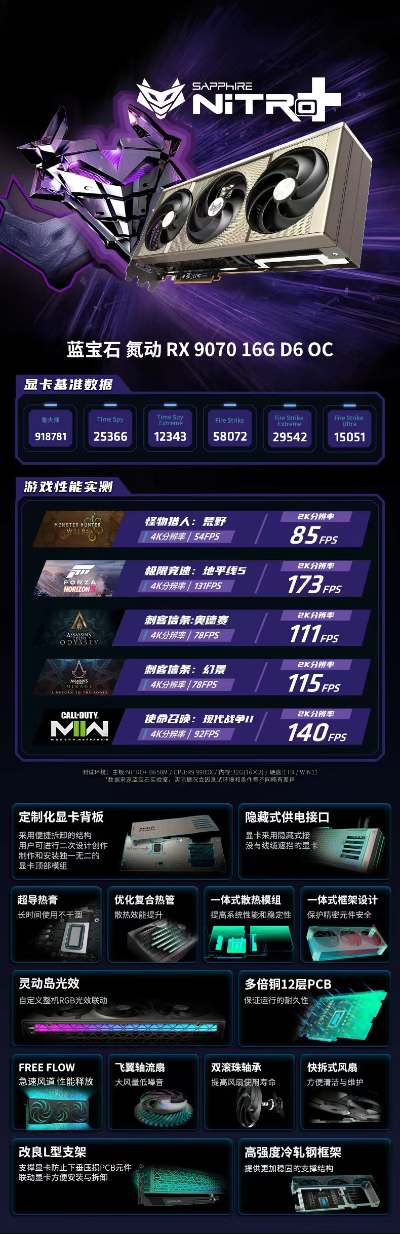 • 商品名称:蓝宝石(Sapphire)RX9070 XT 16GB GDDR6 OC 氮动
