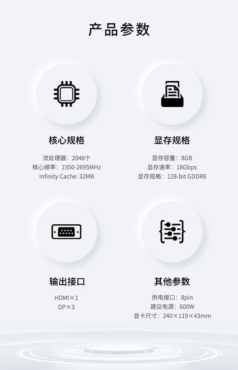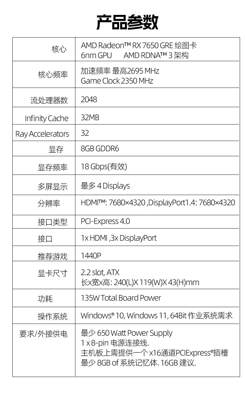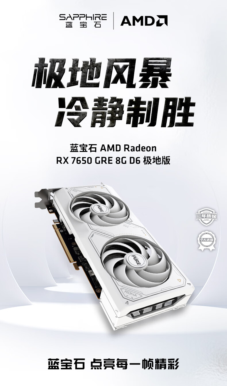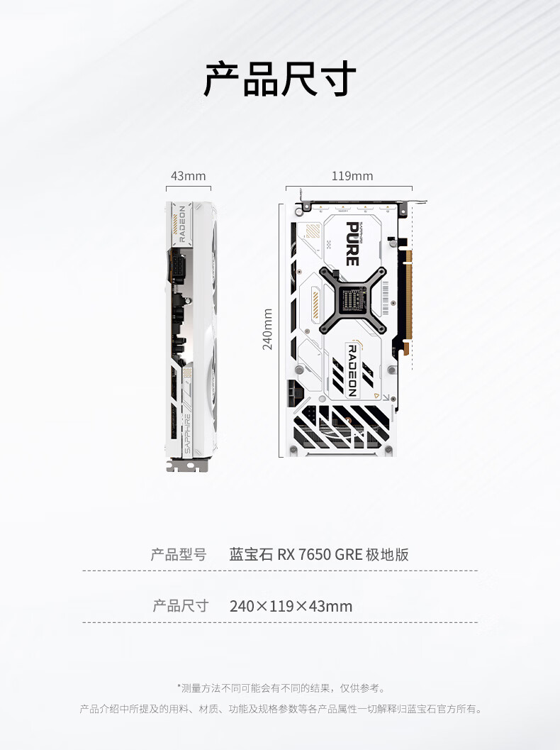 • 商品名称:蓝宝石(Sapphire)RX7650GRE 8GDDR6 极地版 (白色)