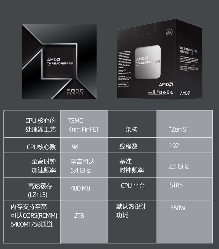 • 商品名称:AMD Threadripper线程撕裂者PRO 9995WX盒装 96核心 处理器