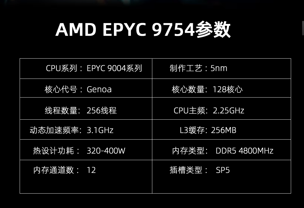 • 商品名称:AMD EPYC 9754盒装 处理器