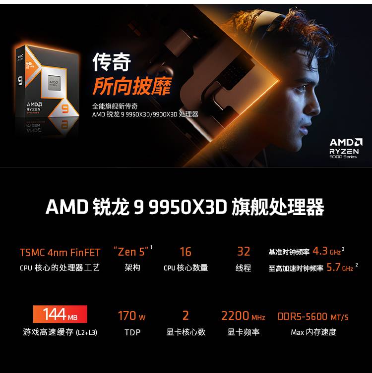 • 商品名称:AMD Ryzen 9 9950X 3D盒装 处理器