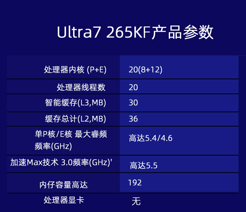 • 商品名称:英特尔(Intel) Ultra7265KF 二代CPU处理器