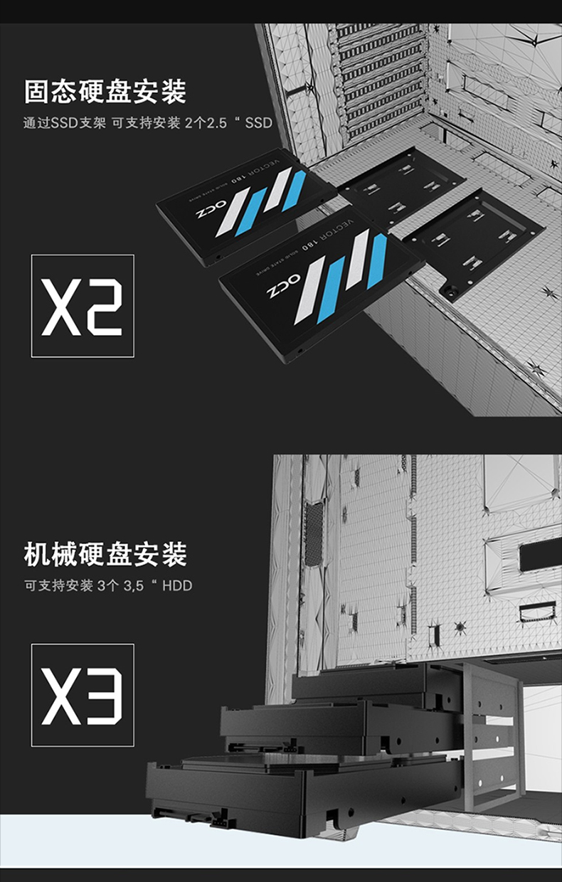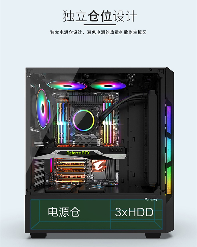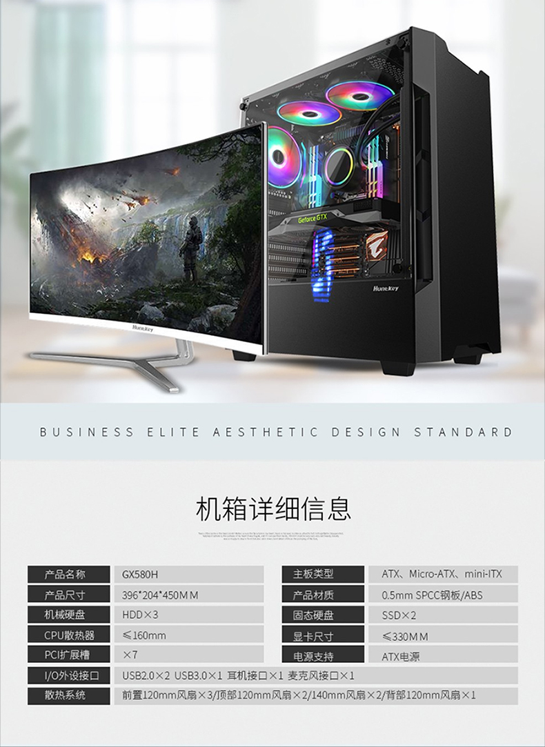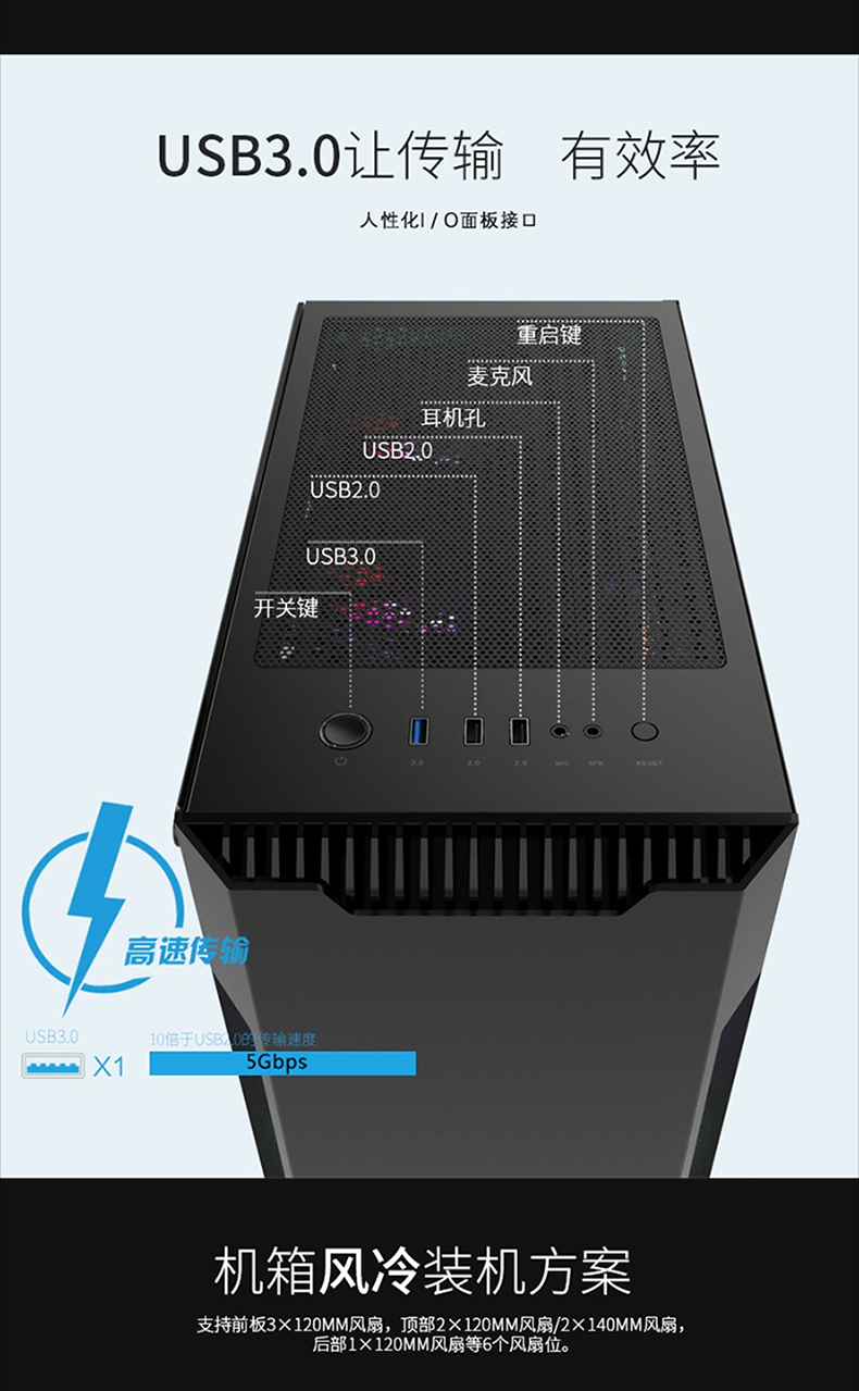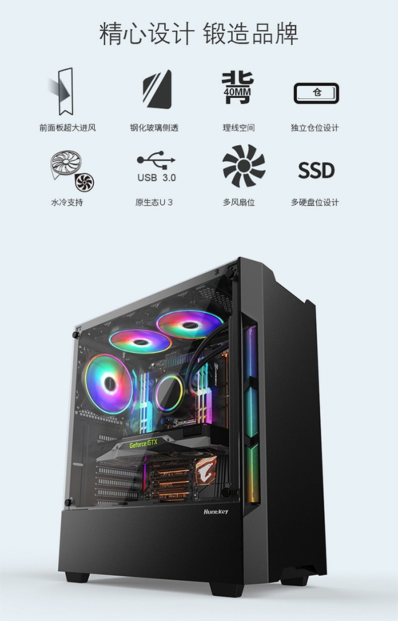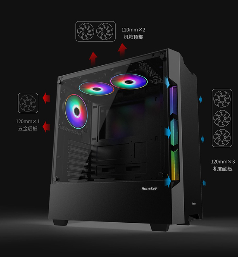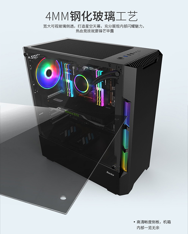• 商品名称:航嘉GX580H电脑机箱台式机箱背线侧透钢化玻璃 黑色